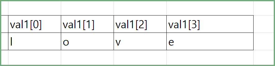 변수 va1에 문자열 love를 저장하였습니다.