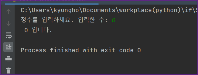 elif 조건문에 조건으로 0이 되면 0입니다를 출력하게 하였습니다.