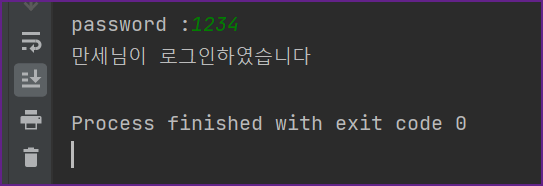 물론 패스워드를 잘못 입력한 경우는 중첩 if 문 안에서 else 이후 실행문을 실행됩니다.