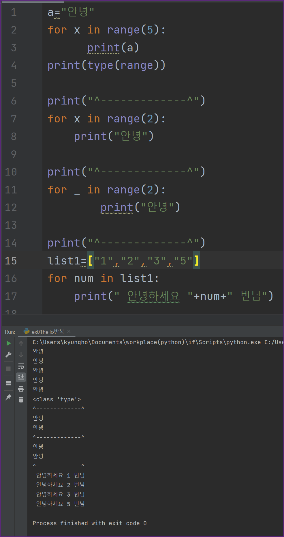 인 경우 해당 변수 를 반복 문장에서 사용할때는 해당 변수를 넣어줍니다.