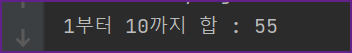 반복문에서 숫자만 바꾸면 10까지 합. 100까지 합 등 다양한 값을 구할 수 있습니다.