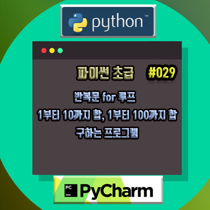 파이썬 초급 #029 반복문 for 루프 1부터 10까지 합, 1부터 100까지 합 구하는 프로그램을 코드를 보면서 알아보겠습니다.