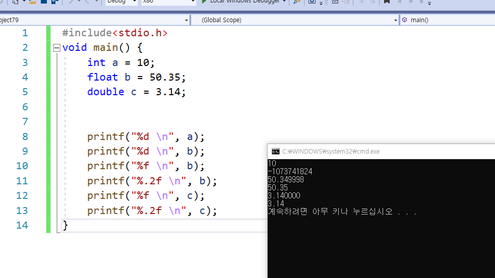 printf("%f \n", b); ---> 실수형에 실수형 출력