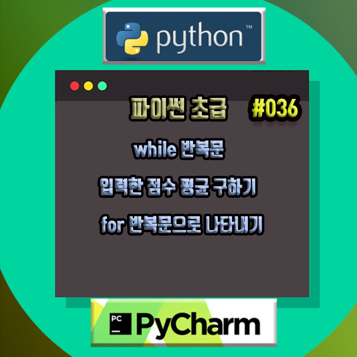 파이썬 초급 #036 while 반복문 점수 입력한 점수 평균구하기 for 문으로 나타내기 , 리스트변수에 저장하기(append())를 코드를 보면서 알아보겠습니다.