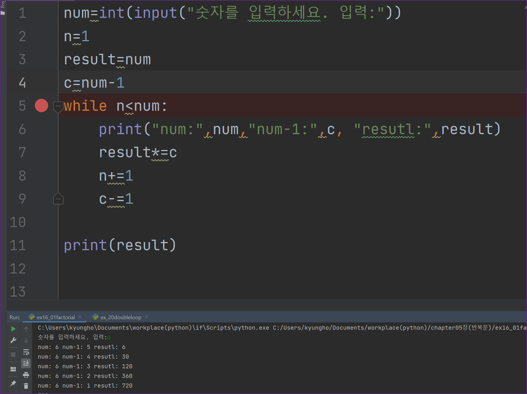 print(num,"! 은 %d " %fa)'Python' 카테고리의 다른 글