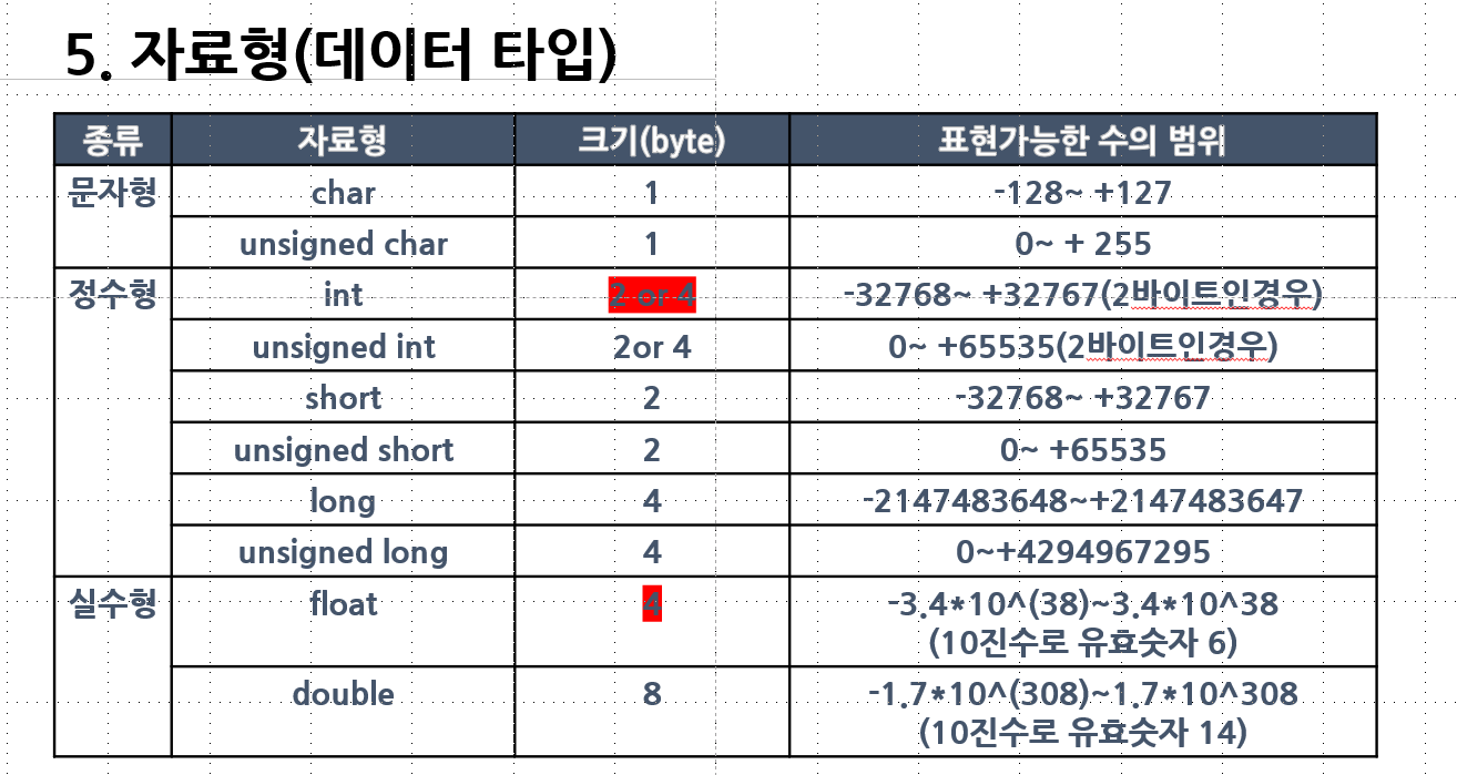 c 언어에서 자료형은 너무나 중요한 기초입니다. 이는 수학을 할때 구구단정도로 너무나 필수적인 내용입니다. 그래서 여러번 하다보면 이해할 수 있습니다. 사람들 사이에서는 아무런 부담없이 쓰는 문자와 숫자가 기계가 이해할 수 있는 언어로 표현을 하다 보니 고안해 낸 방법인데 그런 측면에서 c언어는 정말 잘 만들어진 언어입니다. 그래서 저급언어와 고급언어의 중간에 위치해 있어서 지금까지 꾸준히 사용하고 일부 다른 프로그래밍 언어를 이해할 때 c언어를 배워야 하는 이유가 여기에 있지 않나 싶습니다. 저도 자료형(자료구조) 부분을 볼때면 처음에는 암기하려고 하지 않았는데 표현가능한 수의 범위까지도 이해하고 암기해 보는 것도 추후적으로 프로그래밍 언어를 이해할때 나름 헷갈리지 않고 좋습니다.