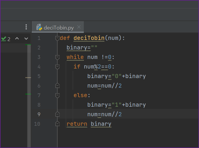 이를 코드로 바꾸면 2로 나누고 나머지가 있으면 0을 붙여주고, 나머지가 있는 경우 1을 붙여주면서 몫을 계속 2로 나누면 된다.