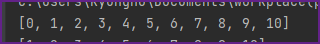 리스트에 숫자를 0부터 10까지 저장합니다.