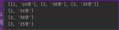 list1=[[1,"24명"],[2,"30명"],[3,"25명"]]