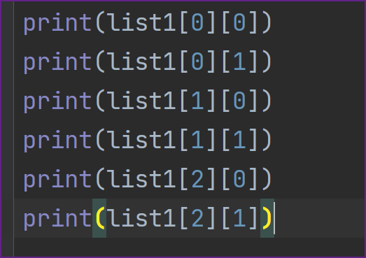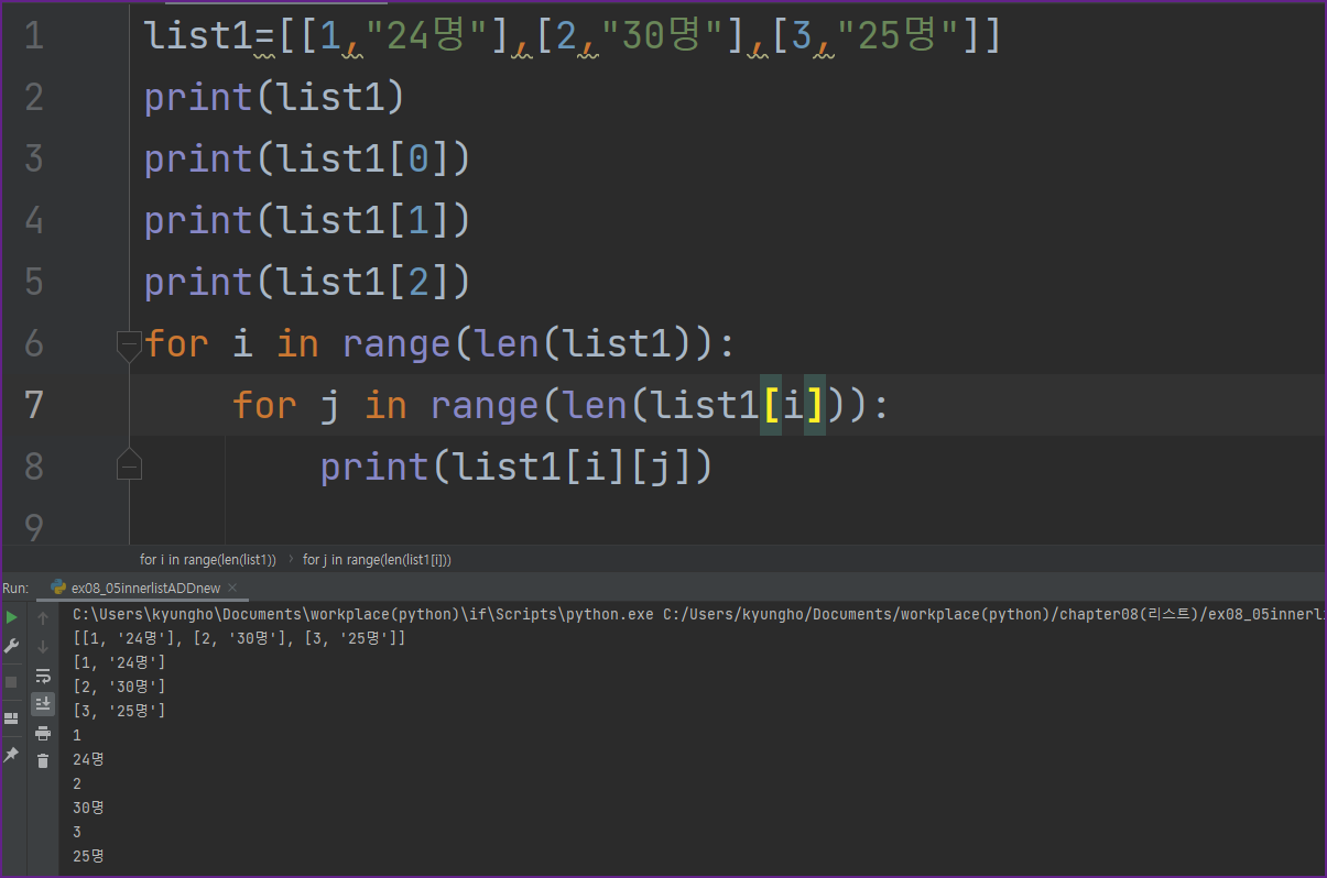 list1을 구성하는 요소값이 리스트로 되어 있는 것을 볼 수 있다.