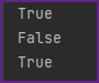 문자열을 개별 요소값으로 갖는 리스트 또한 해당 문자열이 있는 경우와 없는 경우에 따라서 각각 True, False값으로 하여 참, 거짓을 보여줌을 알 수 있다.
