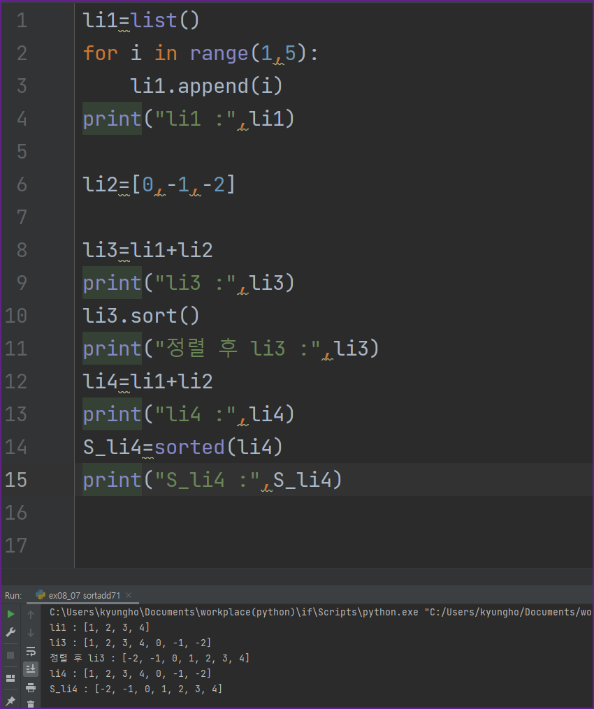 li3 리스트는 li1+li2의 요소를 합한 리스트입니다.
