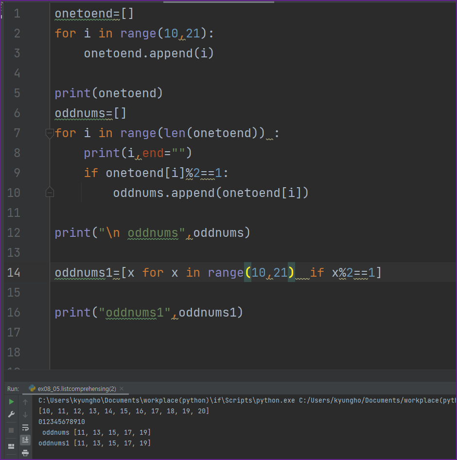 oddnums1=[x for x in range(10,21) if x%2==1]