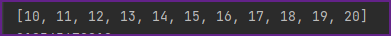 10부터 20까지 수를 요소로 가지는 리스트입니다.