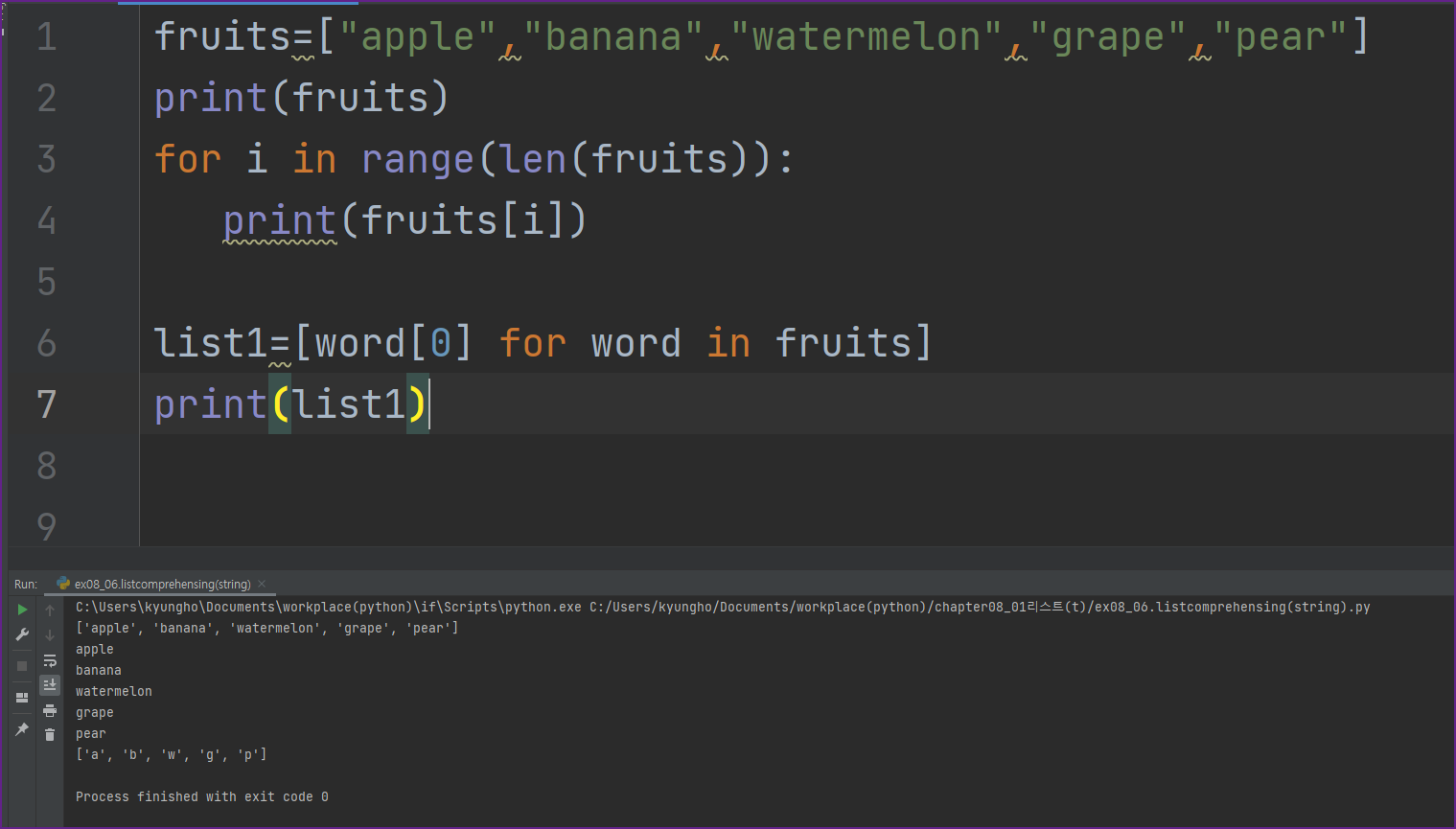 파이썬 중급 #082 리스트 - 리스트 함축 문자열 첫단어 출력에 대해 알아보겠습니다.