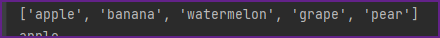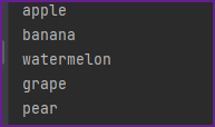 fruits=["apple","banana","watermelon","grape","pear"]