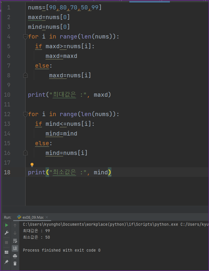여기서 최대값은 당연히 일반 변수로 저장하여 출력하도록 합니다.