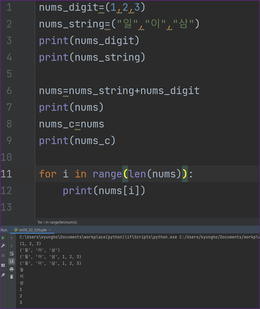 튜플은 개별 인덱스를 가지고 있어서 반복문을 활용한 요소값 출력을 할 수 있다.