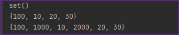 set를 생성하고 , 자료를 추가해 보았습니다. 한개를 추가할때는 add(), 여러 요소를 추가할 경우 update()를 사용합니다.