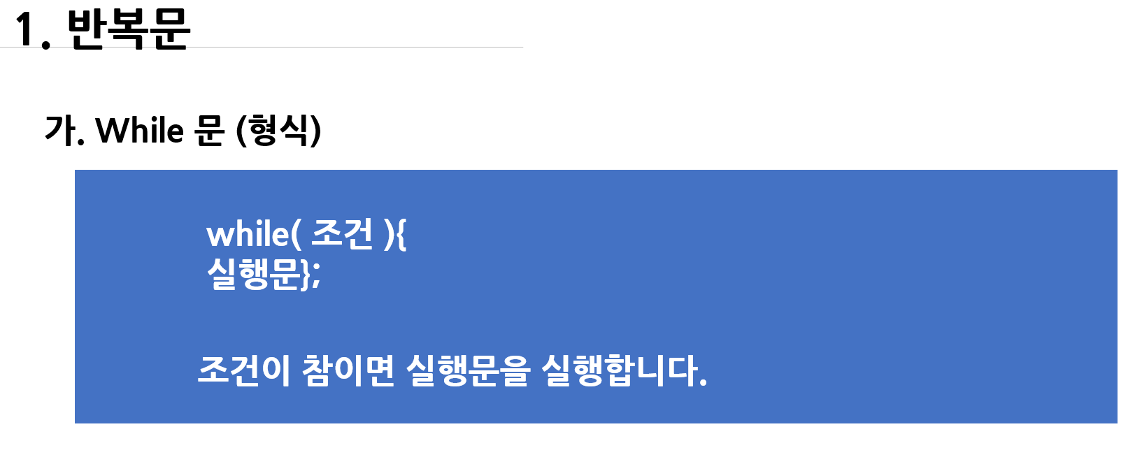 for 문과 함께 많이 사용하는 무한루프 while문입니다.
