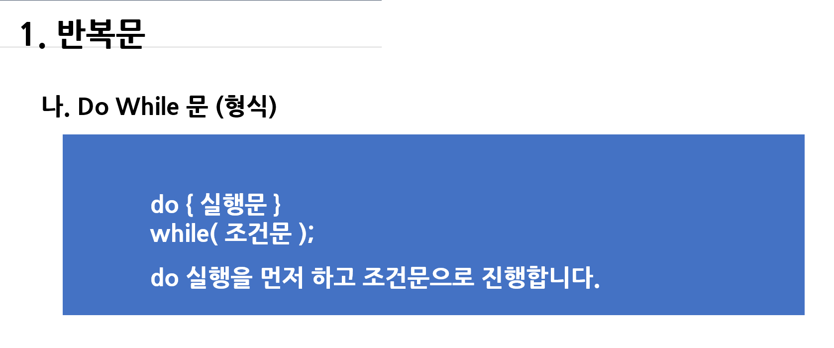 while (a <= b); --> 조건을 만족하면 do 실행문으로 진행합니다.