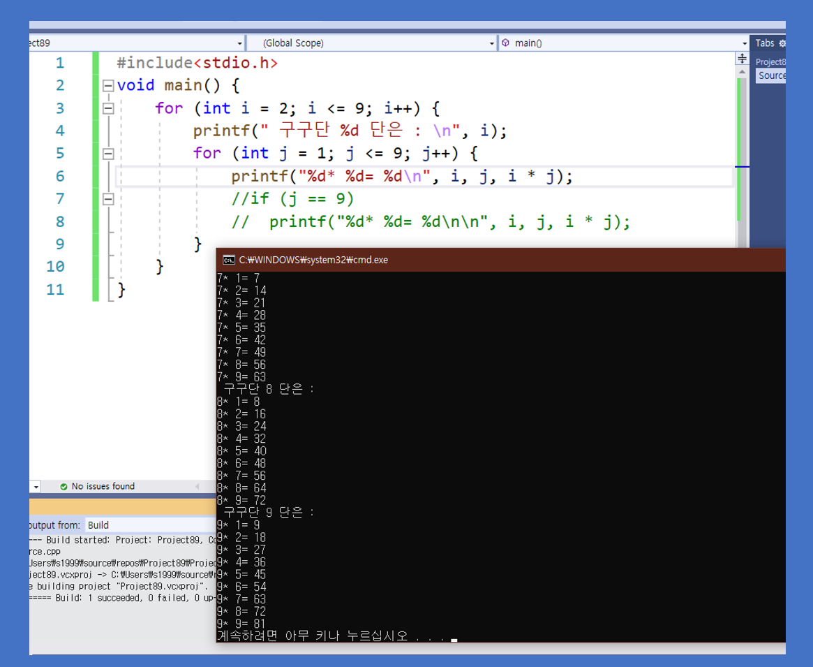 c 언어[016] 이중for문 2단부터 9단까지 출력하는 프로그램에 대해 알아보겠습니다.