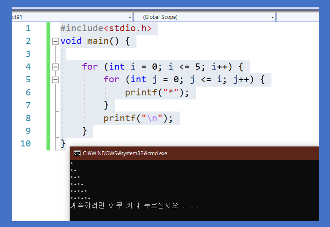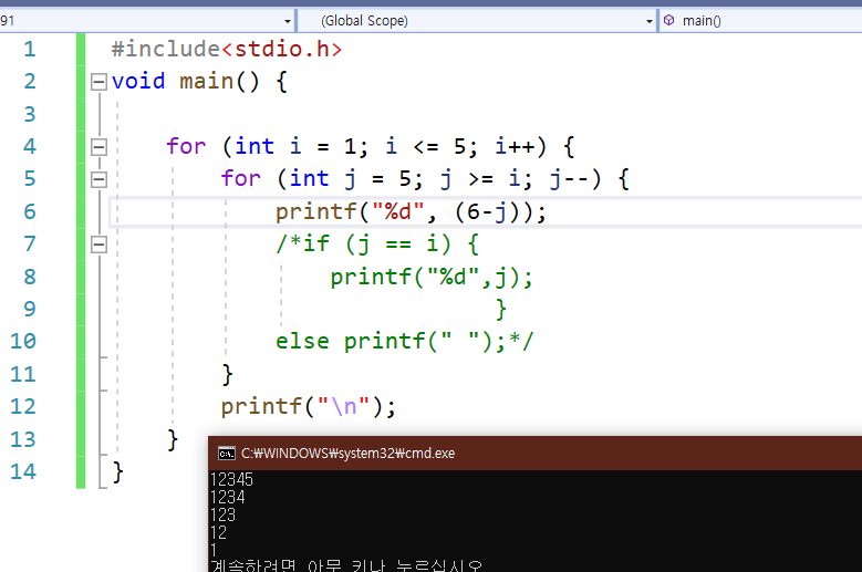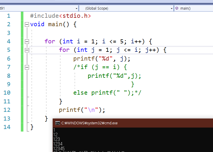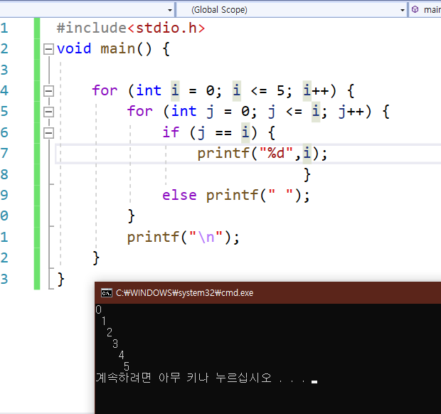 이중 for 문을 제대로 이해하고 있으면 충분히 c 언어의 초급은 마무리 되었다고 할 수 있습니다.