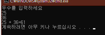 그결과 25+36= 61을 출력합니다.