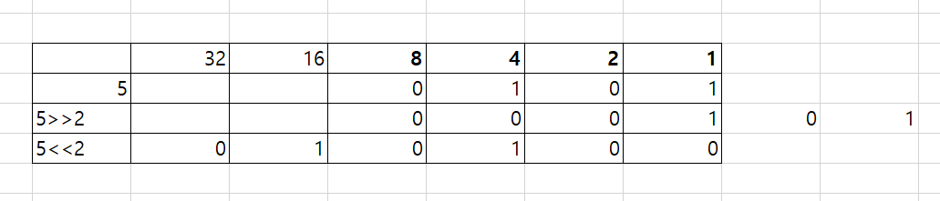 5<<2 를 알아보면