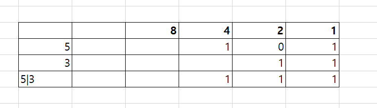 5와 3의 비트에 하나라도 1. 참이 있으면 1 참이 되는 연산자입니다.