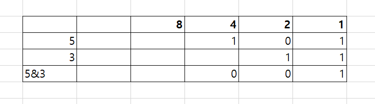 예를 들어 5&3을 알아보면