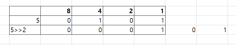 5>>2 는 1 가 됩니다.