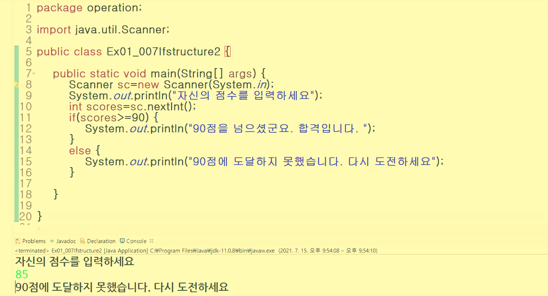 | 자바기초 # 009. 조건문(3) if- else if ... else 학점 판별 프로그램 (0) | 2021.07.17 |