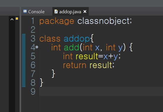 addop. java 파일을 만들고 그 안에 addop클래스를 만들었습니다.
