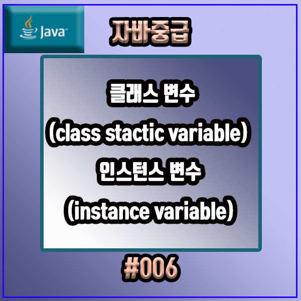 변수에는 클래스 영역의 클래스 변수와 인스턴스 변수가 있고, 메서도 영역에 지역변수가 있습니다. 이번 시간에는 클래스 변수(class, stactic variable)와 인스턴스 변수(instance variable)에 대해 알아보겠습니다.