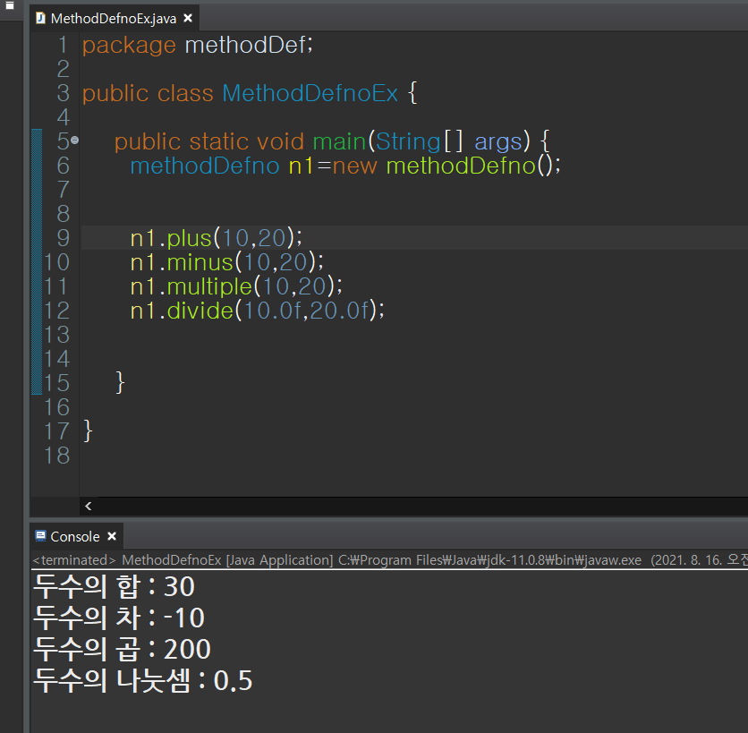 << 실행클래스 작성 methodDefnoEx.java>>