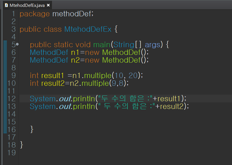 int result2=n2.multiple(9,8); --> 메서드 적용