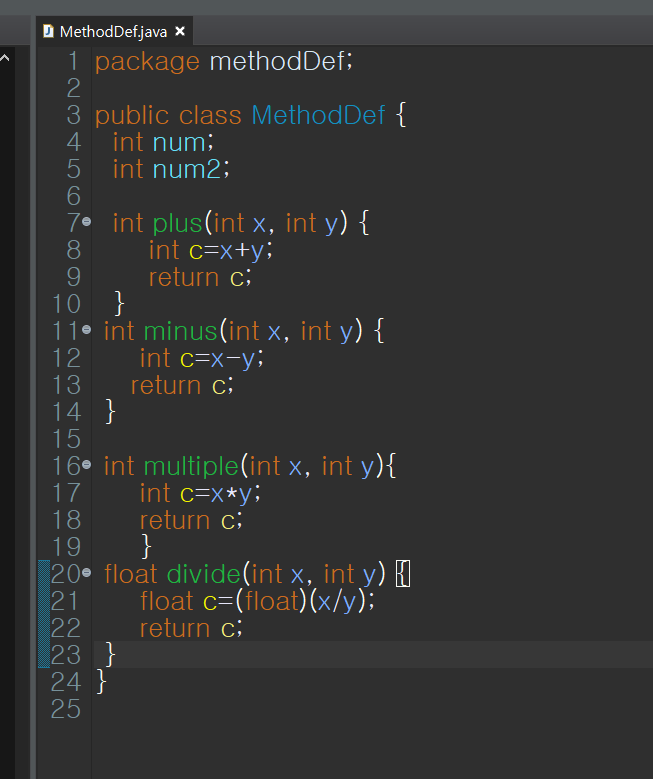 float divide(int x, int y) { --> 멤버 메서드