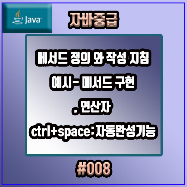 자바 중급 008. 메서드 정의 와 작성 지침 예시- 메서드 구현(. 연산자, ctrl+space:자동완성기능)에 대해 알아보겠습니다.
