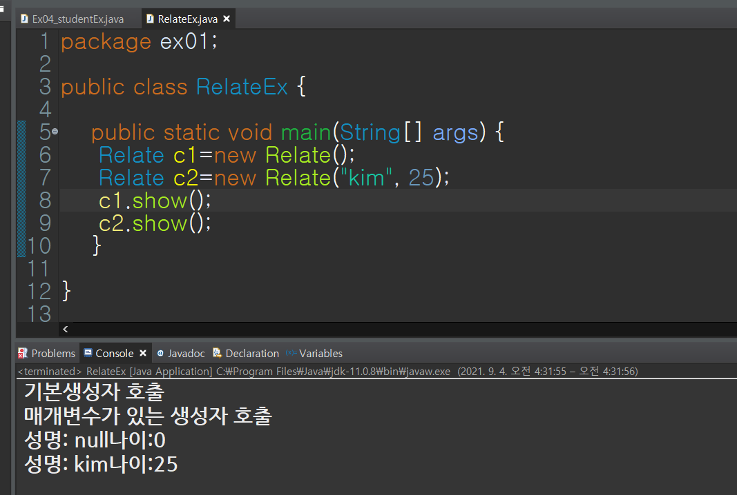 <<RelateEx.java>>실행 클래스 작성