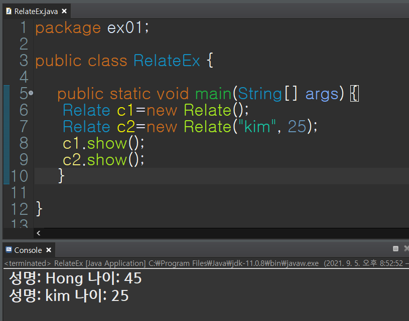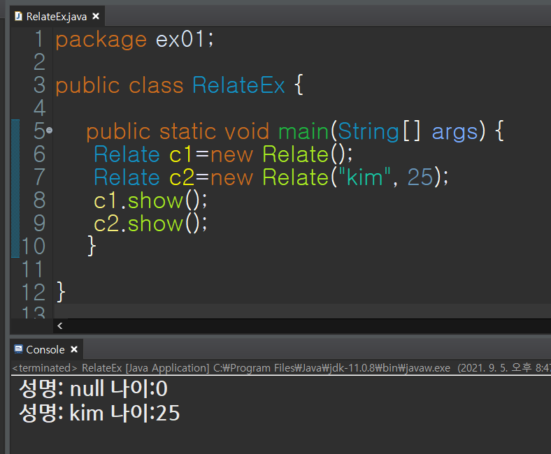 Relate c2=new Relate("kim", 25);