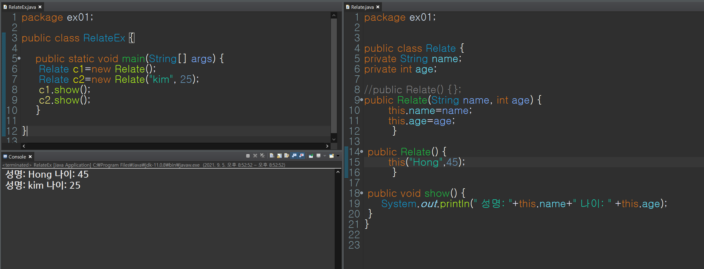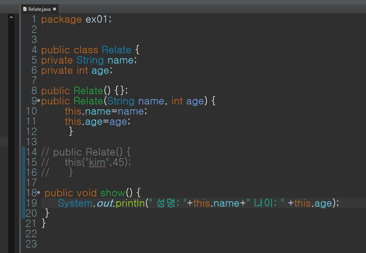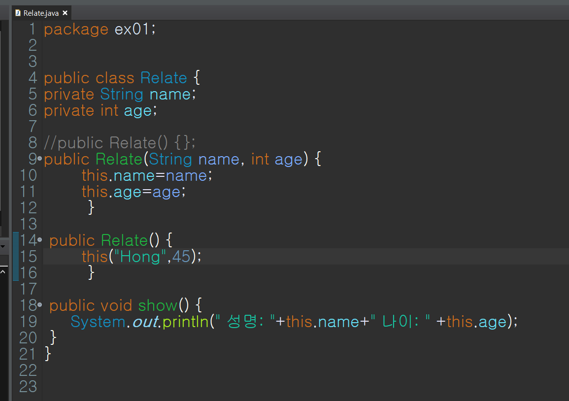 --> Relate(){ this("Hong",45)
