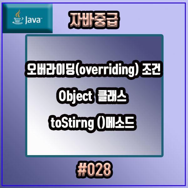자바 중급 028. 오버라이딩(overriding) 조건-재정의- Object 클래스 toStirng ()메소드 에 대해 알아보겠습니다