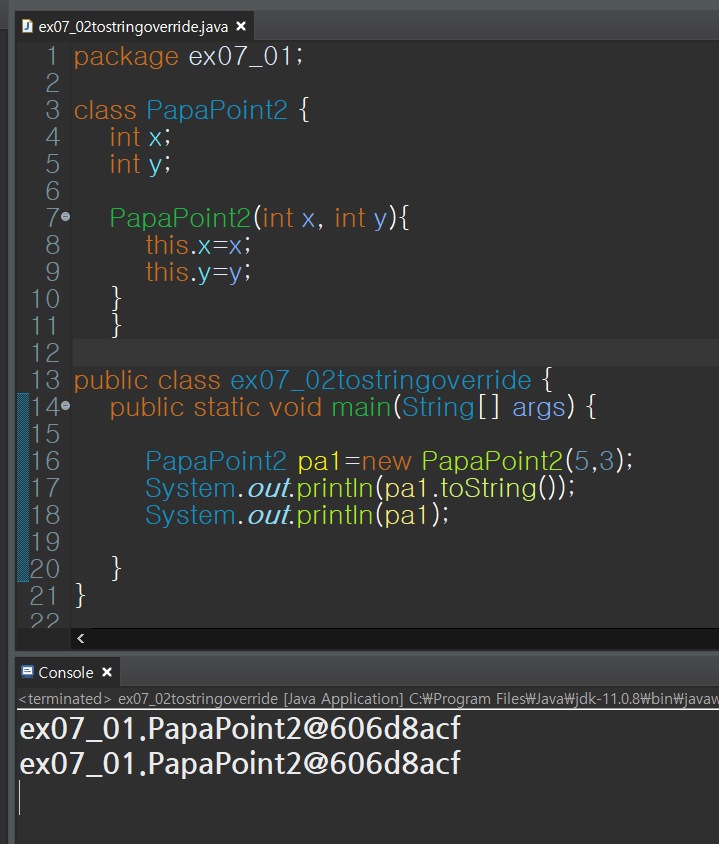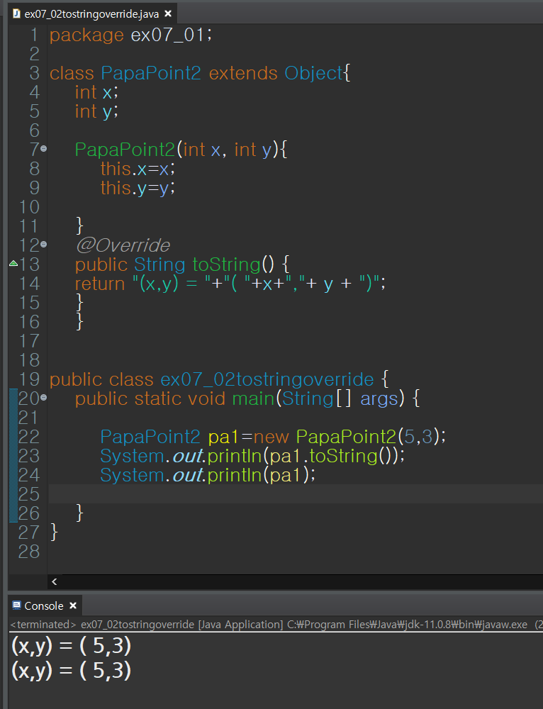PapaPoint2 클래스를 작성하고 객체를 생성해 보았습니다.