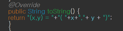 return "(x,y) = "+"( "+x+","+ y + ")";