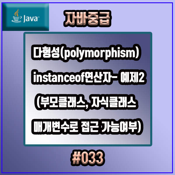 자바 중급 033. 다형성(polymorphism)- instanceof연산자- 예제2(부모클래스, 자식클래스 매개변수로 접근 가능여부)에 대해 알아보겠습니다.