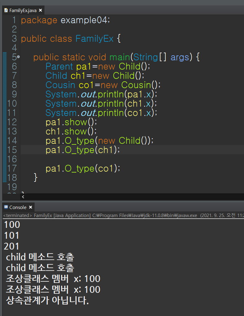 | 자바 중급 032. 다형성(polymorphism)- instanceof연산자- 형변환 가능 여부 확인,Ctrl+T- 상속관계 확인 (0) | 2021.09.24 |