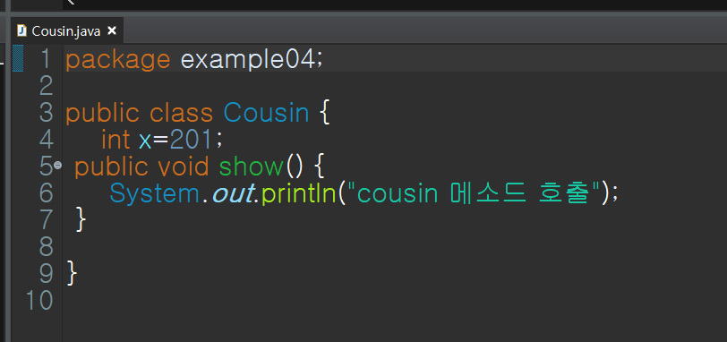 System.out.println(co1.x); --> Cousini 클래스 멤버 변수 값출력 201